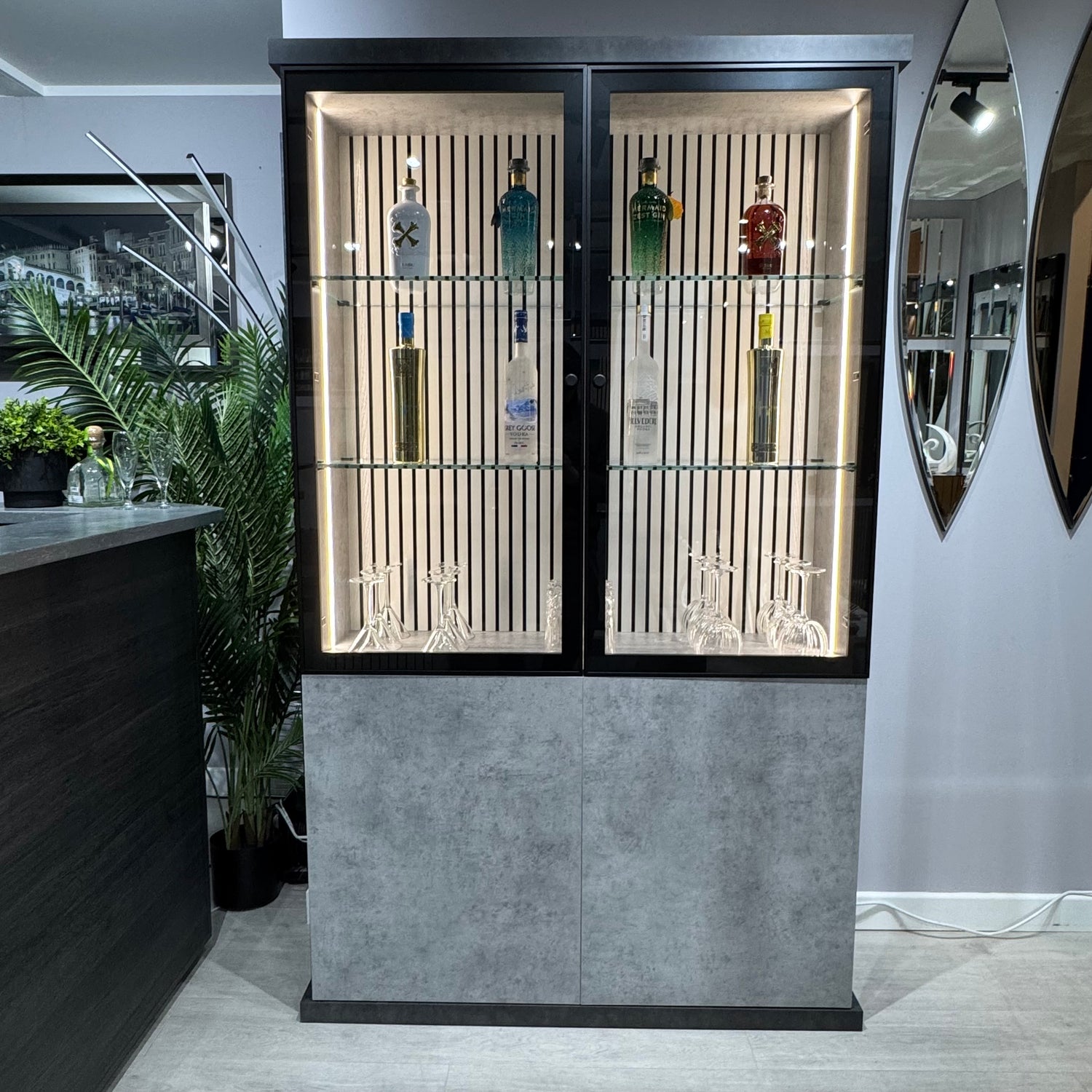 Our super sleek and modern concrete finish drinks display cabinet. Available to order as standard or in bespoke sizes and finishes