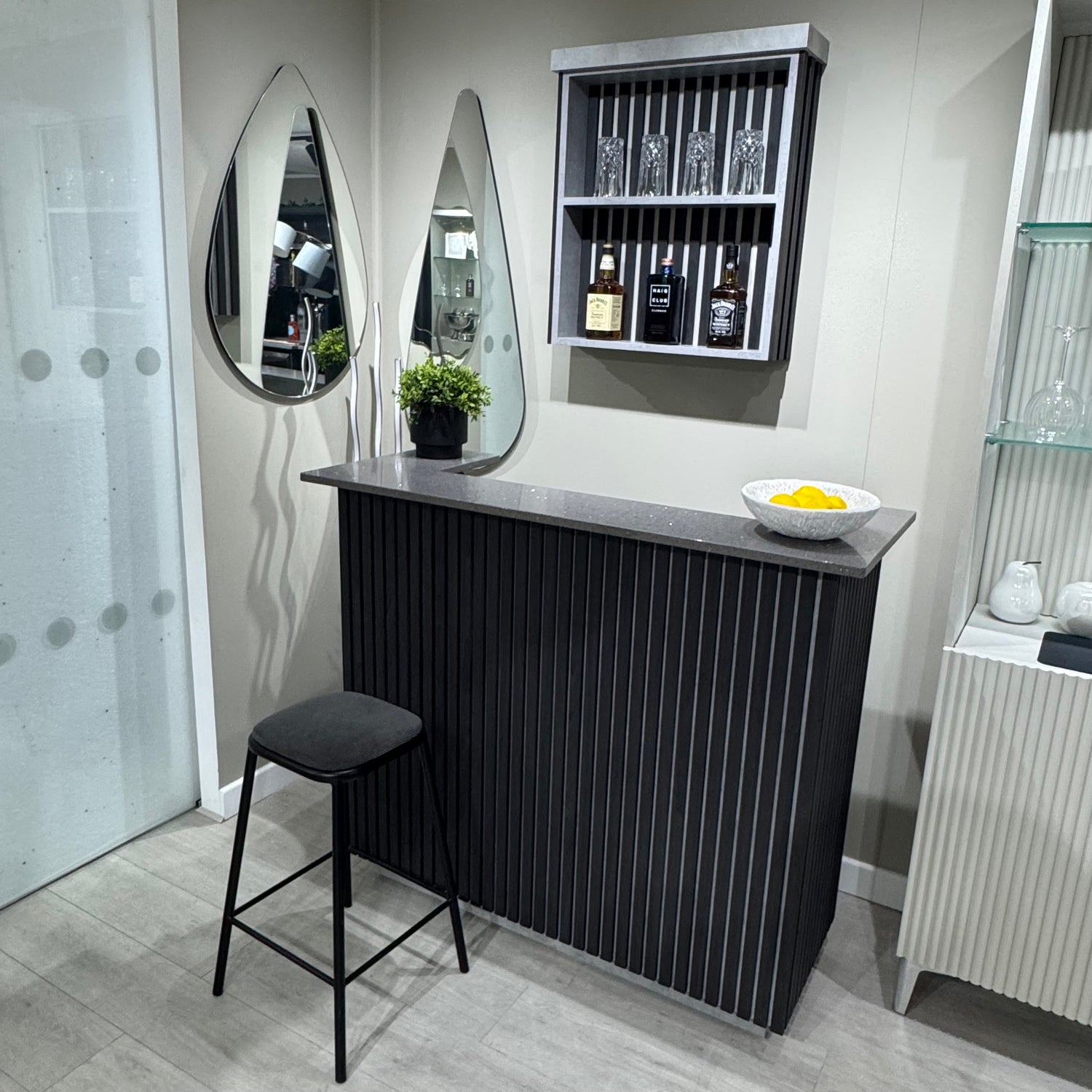 Studio Black & Grey Slat Home Bar with Grey Sparkle Quartz Worktop