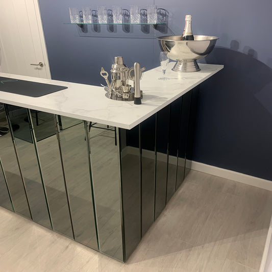 Neptune Silver - Mirrored Home Bar with White Calacatta Quartz Worktop