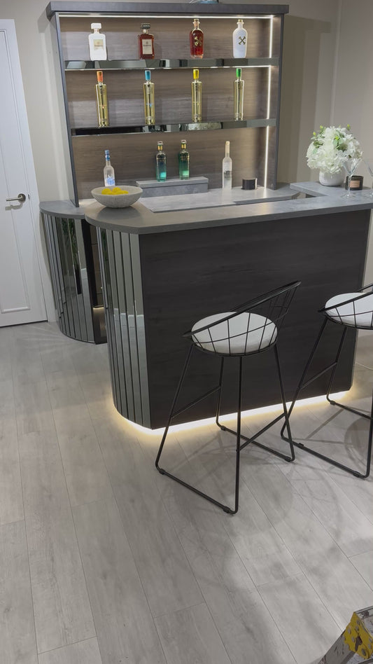 Ultimae Standalone Bar - Curved Home Bar with Antique Mirror & Light Veining Quartz Worktop