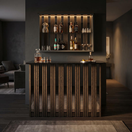 Studio Black & Grey Slat Home Bar with Grey Sparkle Quartz Worktop