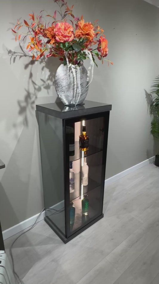 Neptune Grey Wall Bar - Smoke Mirror and Black Sparkle Quartz Worktop