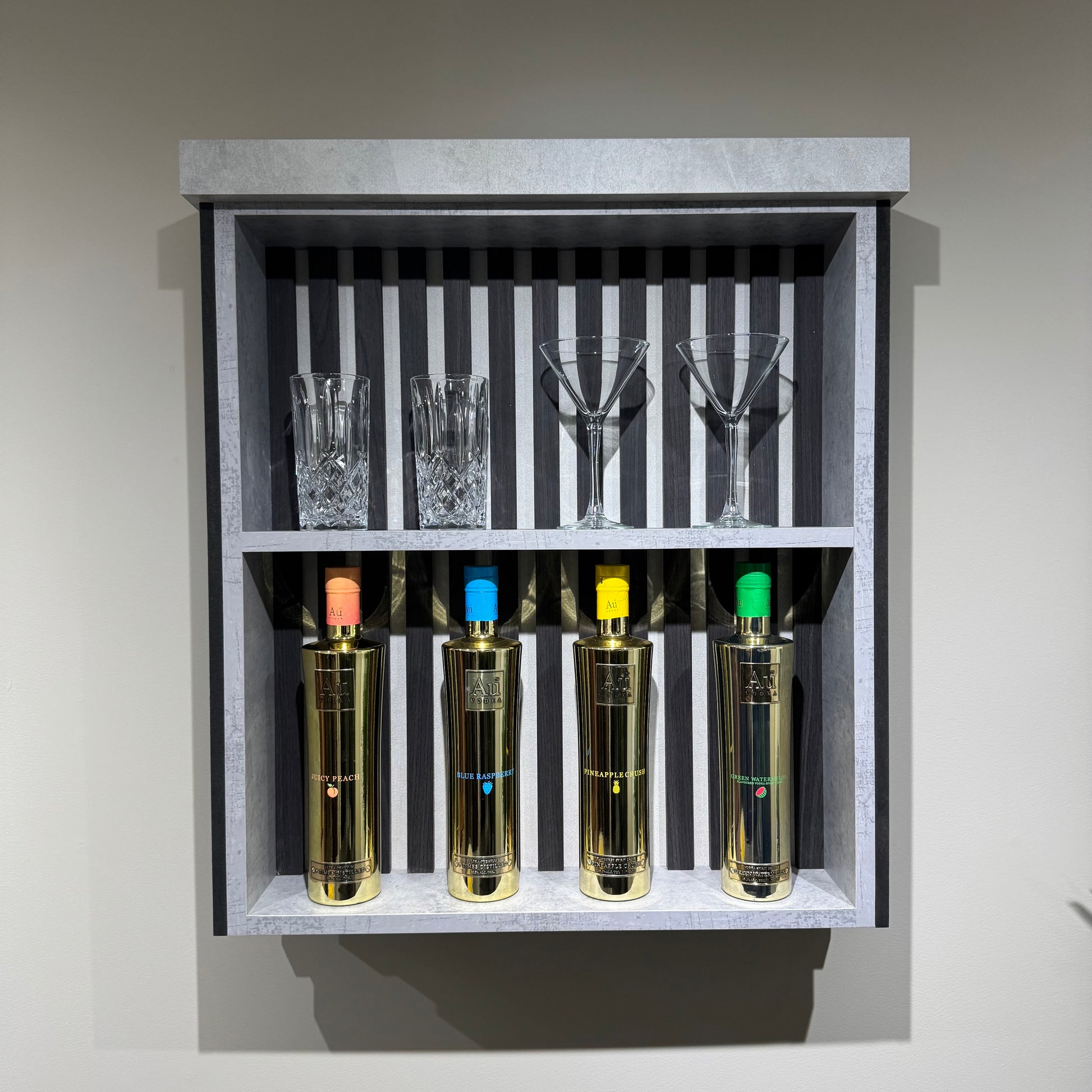 Our modern studio home bar will fit in perfectly in any room and will definitely add character and an impression. You’ll be able to serve up great nights with family and friends or can also be used functionally as a counter